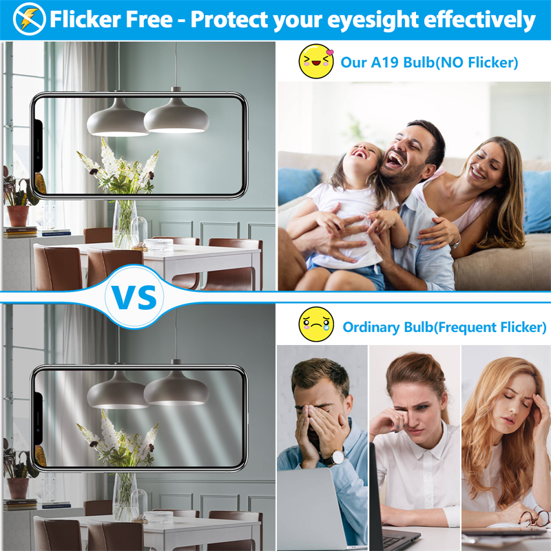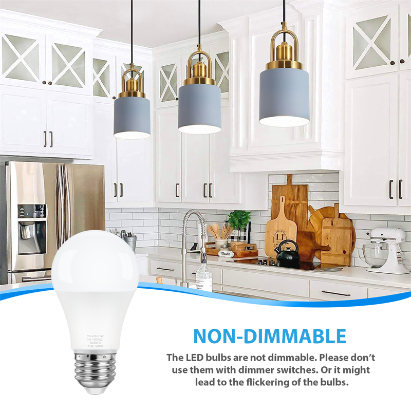 The non-dimmable 5000K A19 bulbs offer stable lighting output, bright but not flickering, dazzling, buzzing or humming. It means that the led bulbs will provide you with a comfortable, stress-free atmosphere, eliminating the eyes' exhaustion and protecting your eyesight effectively.
