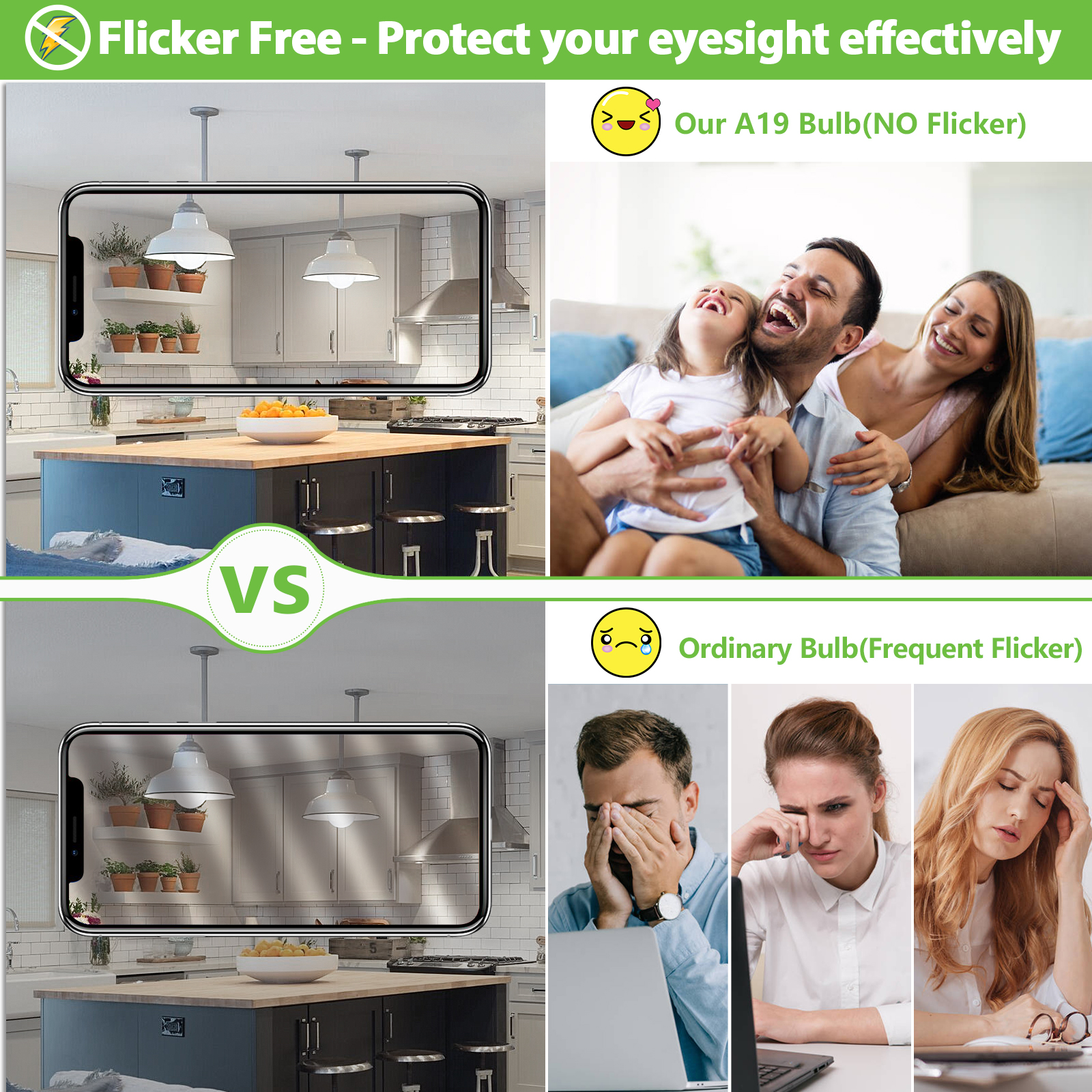 💡【Eye Protection】 After strict quality testing, our 11W A19 LED bulbs emit stable light. No flickering and zero harsh glare, no UV or IR Radiation. The perfect performance of these bulbs can largely eliminate eyes’ exhaustion and protect your family's eyesight effectively. If you have any questions or suggestions, please feel free to contact us. We are always here to assist you.